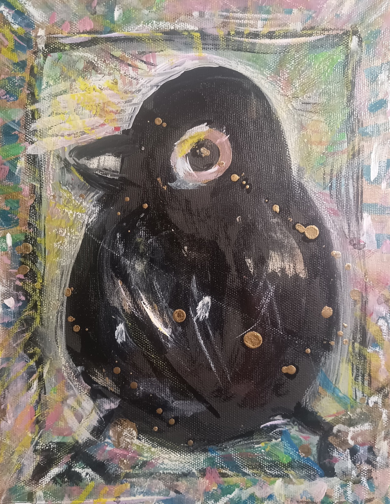 ◉素材、キャンバスにアクリル、メディウム、墨、クレヨン、金メッキ