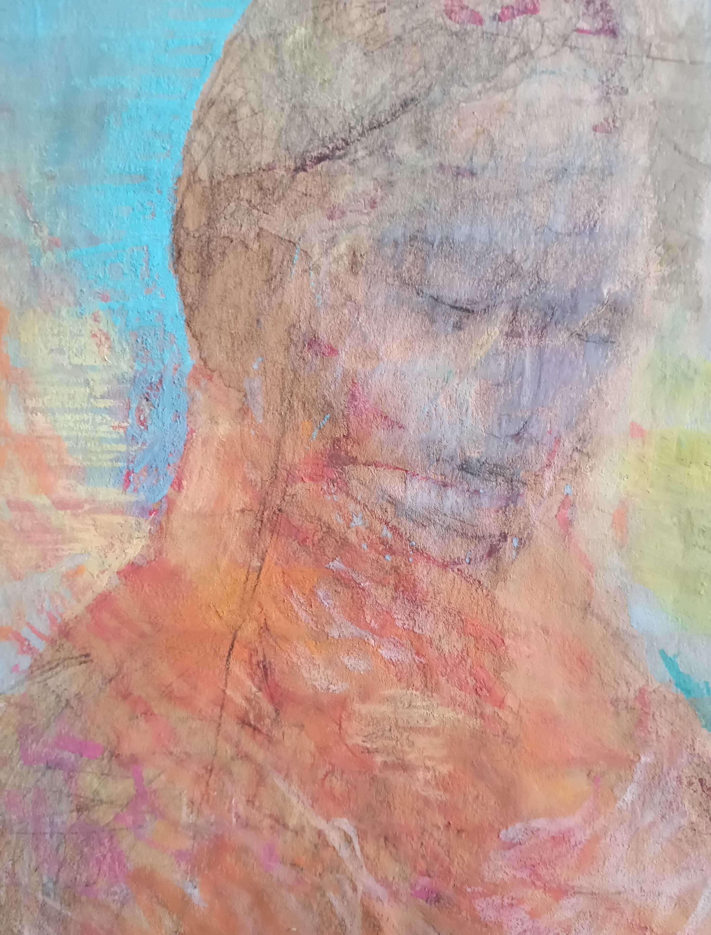 パステル、クレヨン、水彩絵具、鉛筆、金インク